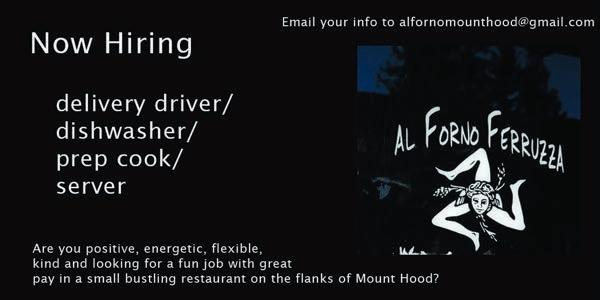 Al Forno Ferruzza is located at 73285 E. Hwy. 26 in Rhododendron. Hours of operation are from 4-10 p.m. Wednesday and Thursday, and noon to 10 p.m. Friday, Saturday and Sunday. For more information, visit mapleaqua.com.