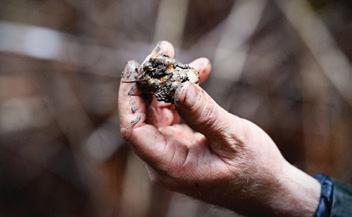 Carly and Kevin are major advocates for dog-harvested truffles and being environmentally friendly in their practices. “A dog will only go after a very ripe, fragrant truffle that’s ready to harvest, and they only dig a small hole that’s easy to fill back in,” Carly explains. “The other method is to rake the bottom of the trees, which gets you mostly unripe truffles that don’t taste good and it damages the forest floor for years to come.”