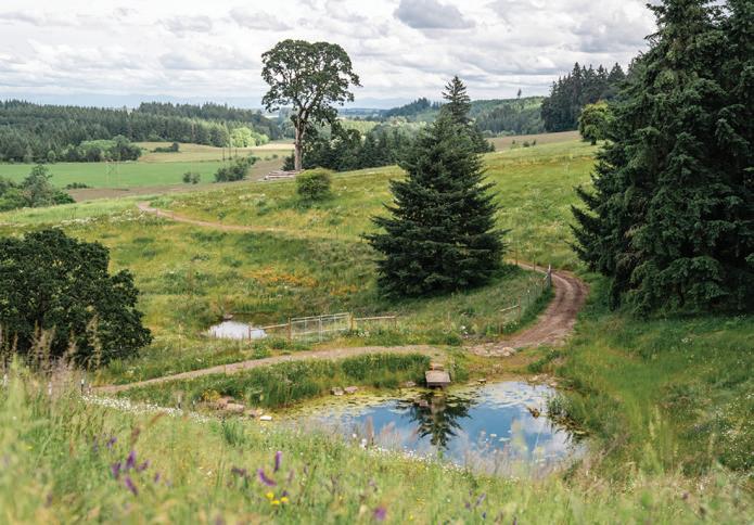 Farm House At Tabula Rasa, and a ninebedroom B&B called Inn The Ground that’s literally built into a hillside. Brenda’s husband, Frank Foti, sold his business in Portland in 2019 and joined her in Yamhill County, where they’ve both fully embraced country life. What started with Tabula Rasa Farms has grown into a flourishing ecosystem of businesses known as The Ground. At its core, Tabula Rasa Farms reflects Brenda’s passion for regenerative