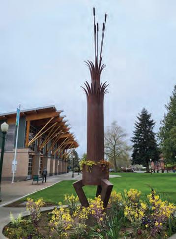 Jenny’s first public sculpture, a 17-foot cattail named “Salacia,” came about serendipitously. While helping another artist on a project for Clackamas
