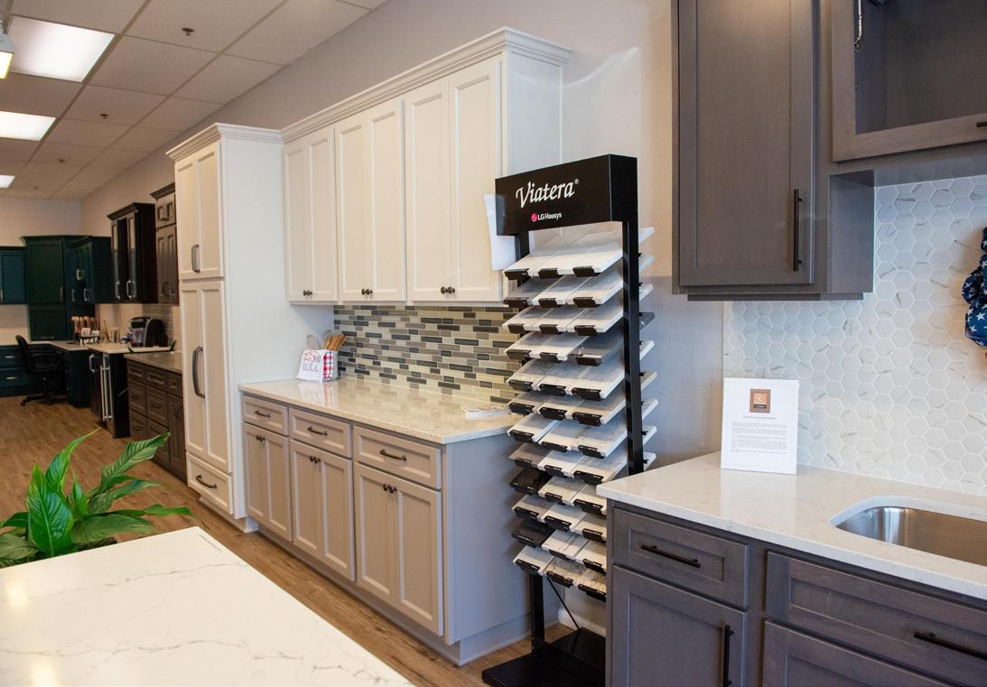 The beautiful showroom showcases their quality products in real-life settings. Unlike any others, they have full kitchen displays featuring Hamilton’s Appliances, who they are proud to be partnered with. Hamilton’s Appliances has all your appliance needs, including refrigerators, dishwashers, stoves, cooktops, microwaves, hood vents, downdrafts, and washers & dryers, too! They also have spectacular displays of cabinets, countertops, and backsplashes.