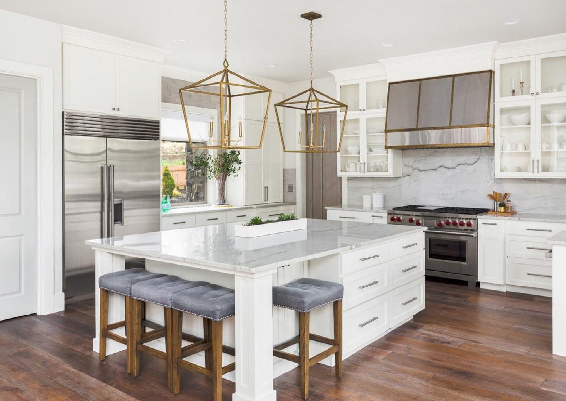 many variations,” explains Dan Izoita. Engineered from pulverized quartz and resin, quartz countertops may contain marble, granite, glass or other materials and pigments to produce an array of colors, veins, patterns and effects. Highly durable and easy to clean, quartz has the ability to match any kitchen style. Granite is another popular choice with many variations available as well, though it does require a little more maintenance. Resealing your granite counter once a year, wiping up spills in a timely manner, and being mindful of items placed directly on the surface will keep your granite countertop looking sharp.