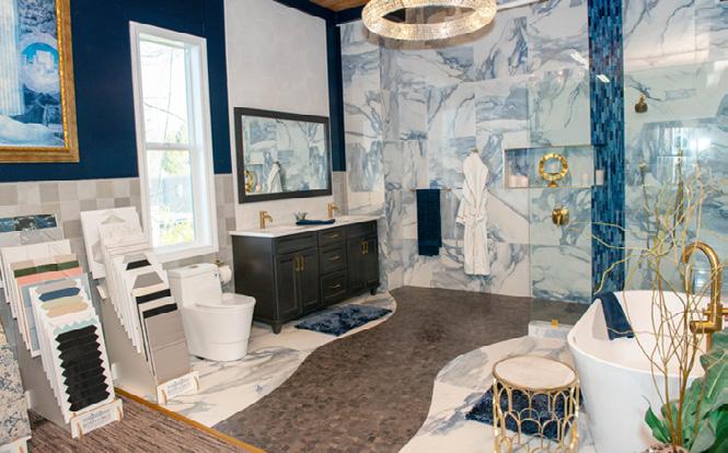 your flooring needs from customstained hardwoods to engineered flooring, as well as luxury vinyl plank, tile, and carpet. They also feature custom closets in a variety of styles as well as carpeting to go along with your master bedroom. Relax on the couch in front of the built-in fireplace on a 12-foot wall of tile with a built-in TV. Every aspect of their showroom is designed with vision and