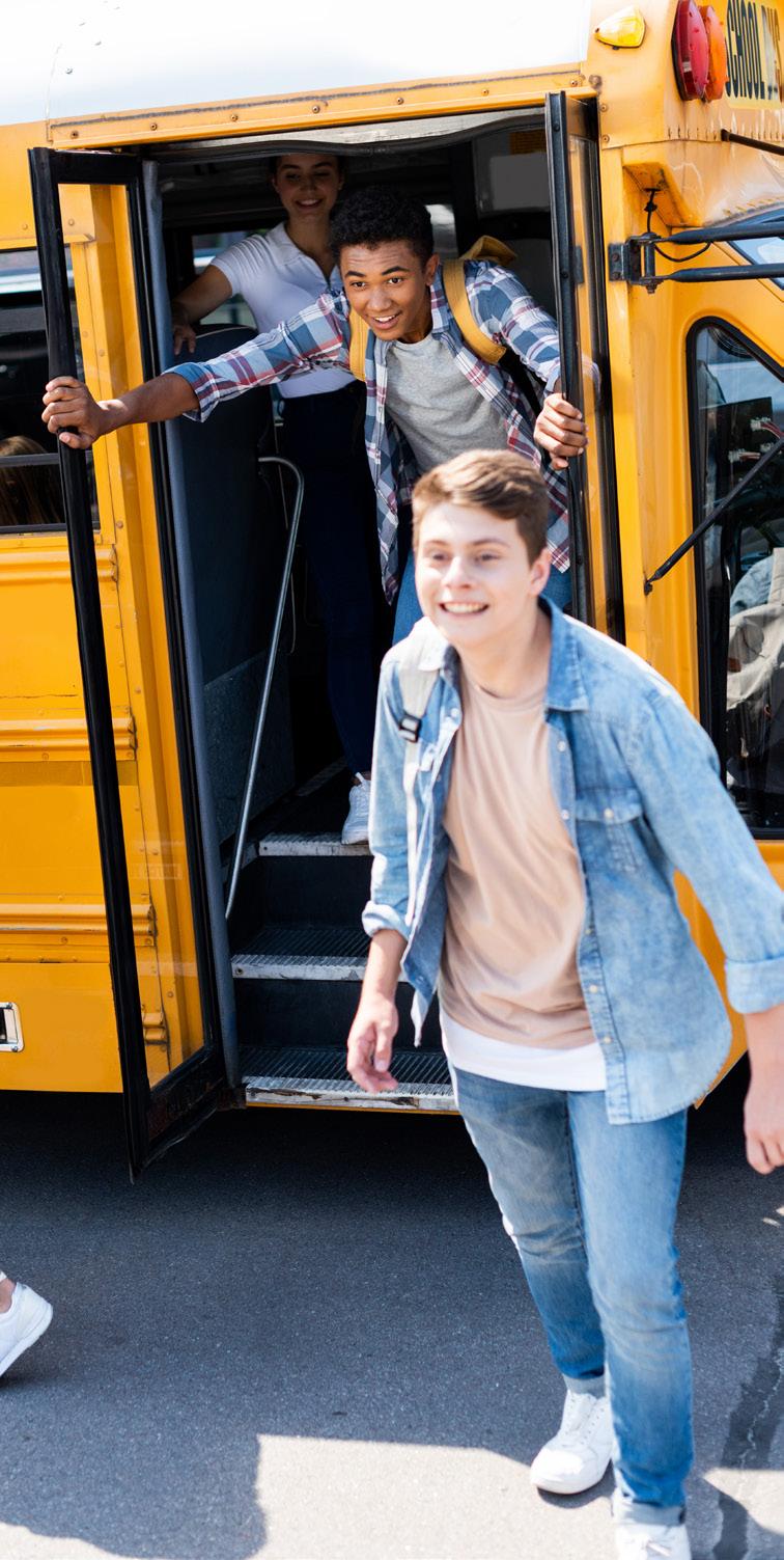 Bus riders should also pair up or wait in groups. Kids should know the number for the bus they need to get on, because buses look very similar and often have routes that overlap.