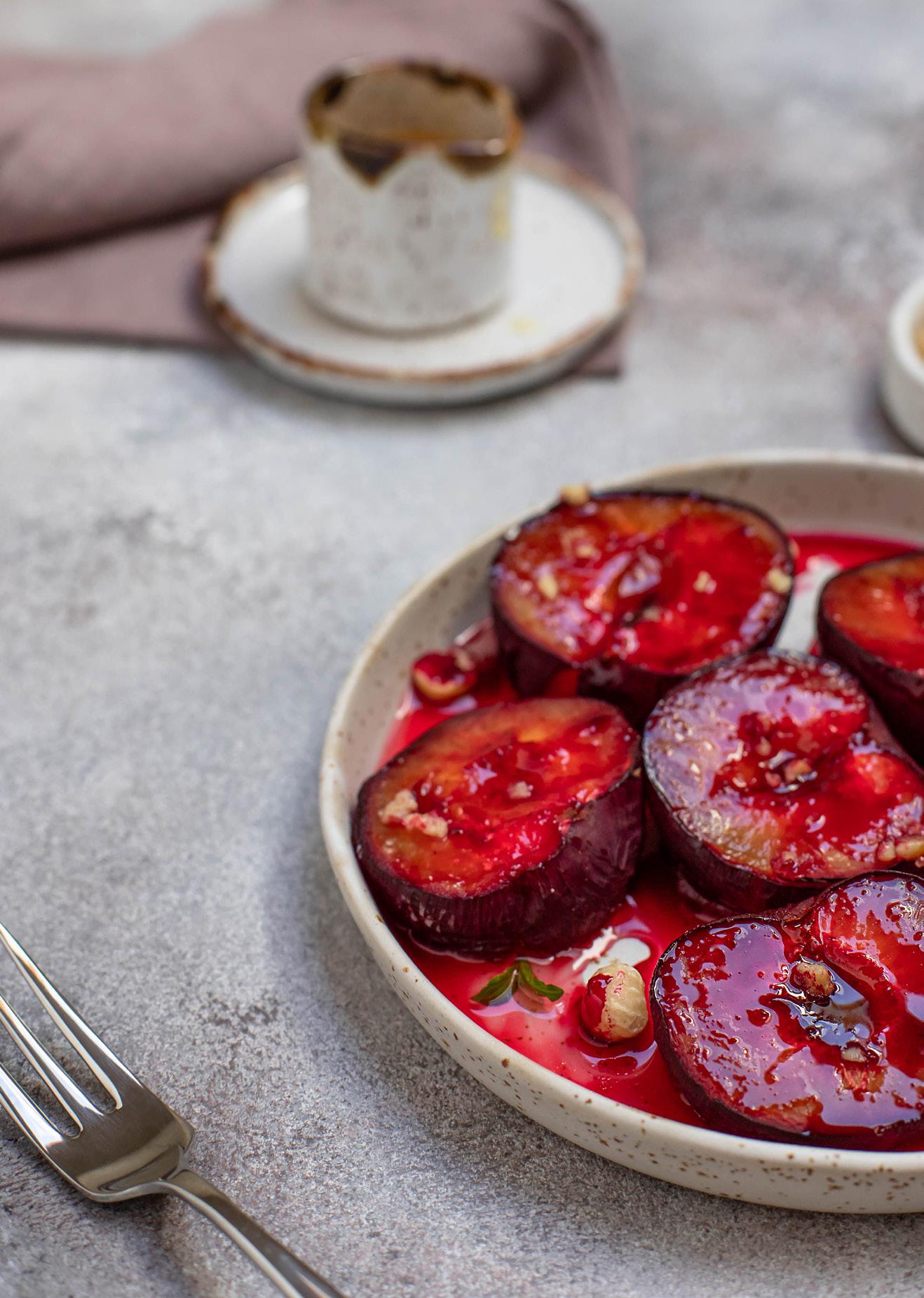 Place plums cut-side up on the sheet and bake for 20 to 25 minutes.