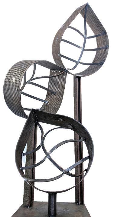 Her sculptures often feature organic shapes inspired by plants and critters, reflecting the natural forms she sees in the metal she collects. Jenny’s approach to selecting materials is intuitive. She allows the shapes of found objects to guide her, envisioning what they can become.