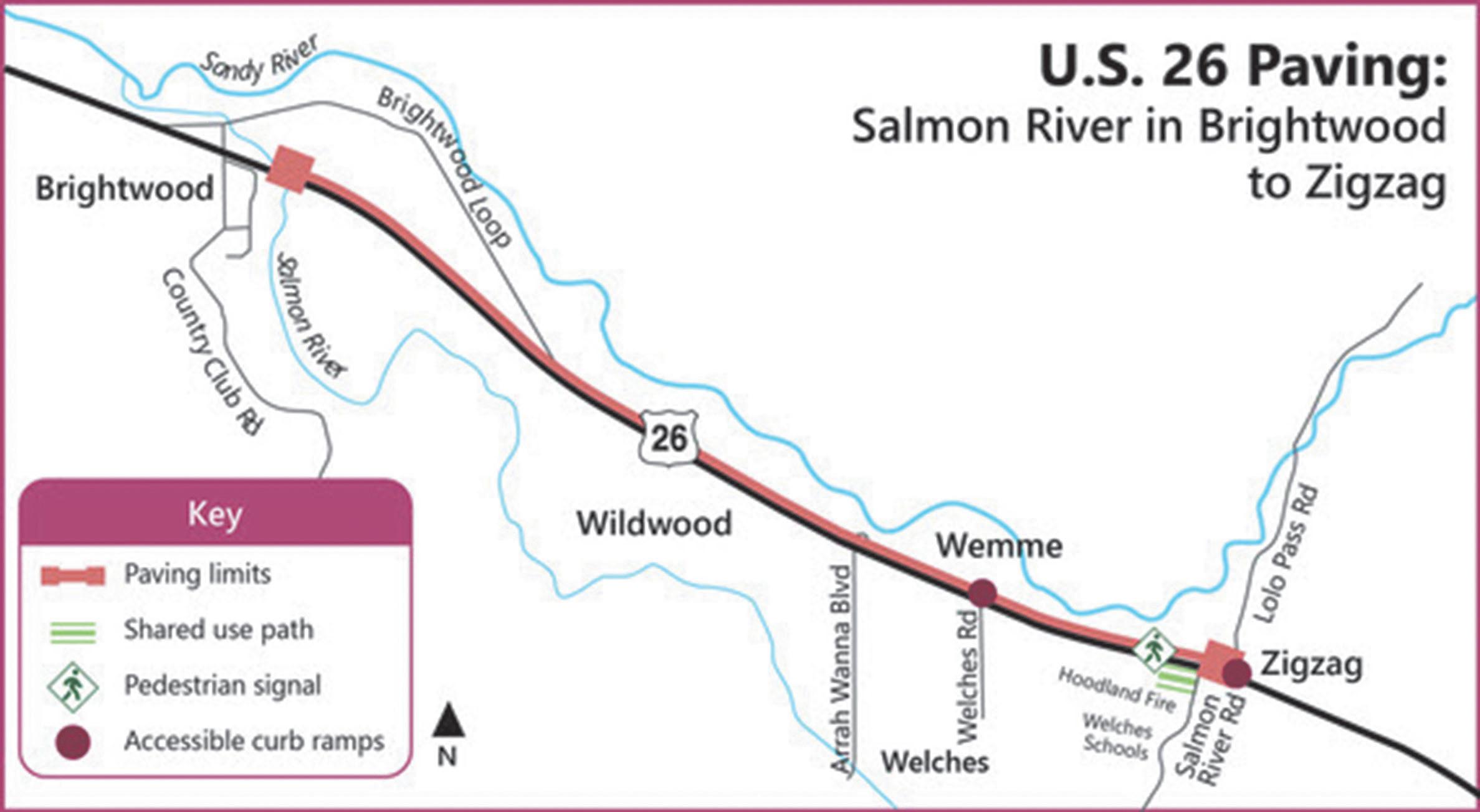 Construction has begun on a major paving project to improve safety for pedestrians, bicyclists and motorists on U.S. Highway 26 between Brightwood and Zigzag. The Oregon Department of Transportation figures to complete the $10.3 million project this fall. The contractor is Brix Paving Northwest Inc. of Sherwood. The project includes a new 700-foot long shareduse path on the south side of