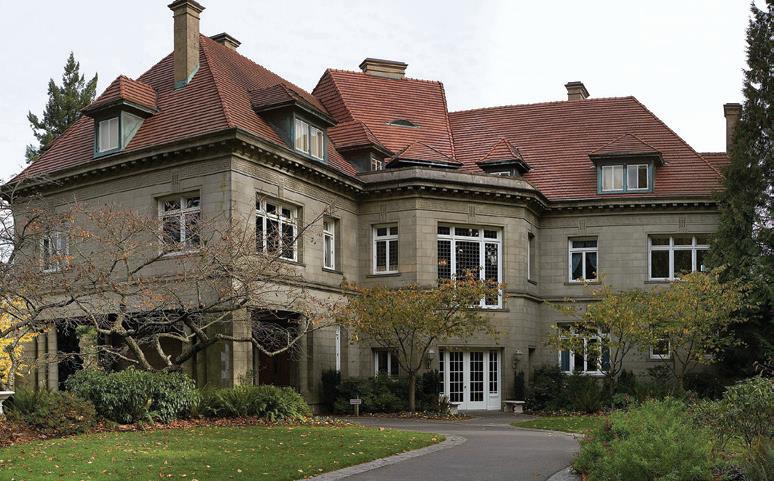 On the estate grounds was a fourstory gatekeeper’s lodge, and a three-car garage with a chauffeur’s apartment above. Renaissance style gardens and a terraced flower garden were accompanied by a tennis court and access to the nearby trails of what was to become Forest Park. Henry’s wife, Georgiana, a passionate advocate for women’s rights and a prominent local philanthropist, delighted in cultivating many varieties of roses in her flower beds.