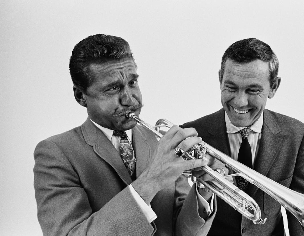 played with the likes of Steve Allen, Eddie Fisher, and Dinah Shore. He actually played for The Tonight Show even before he began his three decades with Carson, closing out each night’s show hosted by Allen with a solo. When Allen left in 1957, he did as well, but was persuaded to return as first-chair trumpeter in 1962. Five years later, he was the bandleader.