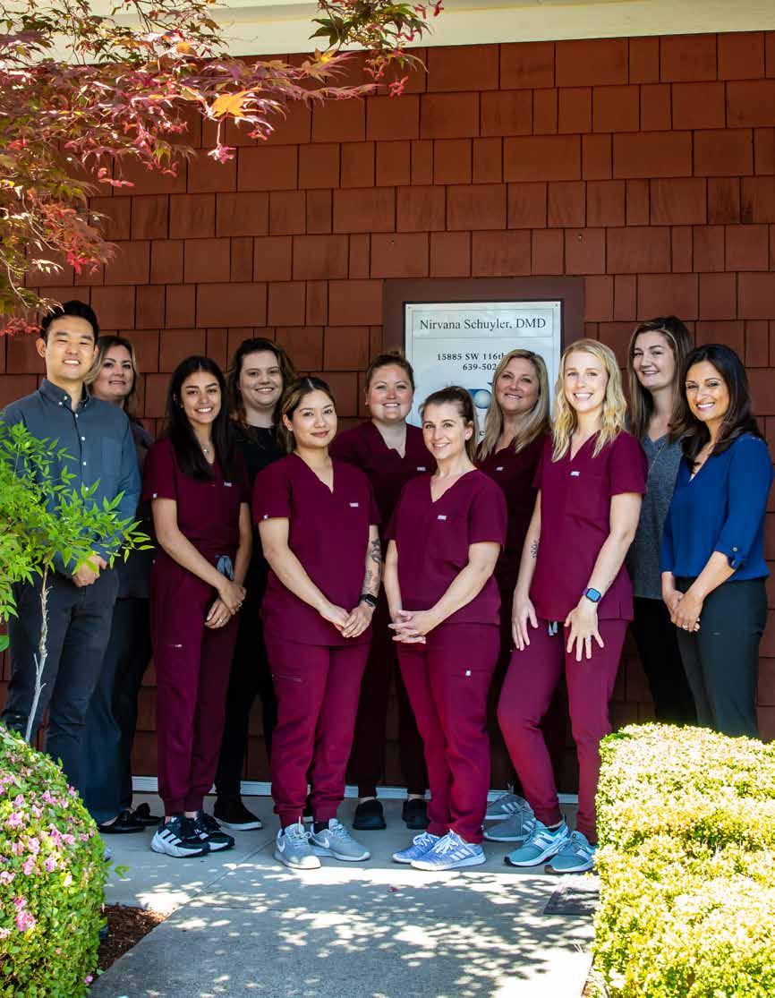 Today’s team of professionals at Bull Mountain Family Dentistry include three full-time hygienists: Cindy, who started with the previous owner and stayed on; Lauren, who’s been there five years; and Shelby, the new hygienist added during the expansion. The assistants are Alexis and Sonia, along with the newest assistant, Madison. Dr. Nirvana Schuyler heads up the team of dentists which includes Dr. Jennifer O’Connor who has been with the team for over four years, and Dr. Leo Choti. The front office is run by Rachele, with Elisa and Tori giving their expert assistance. Altogether, this is a very special team at a very special practice dedicated to giving patients the best possible care.