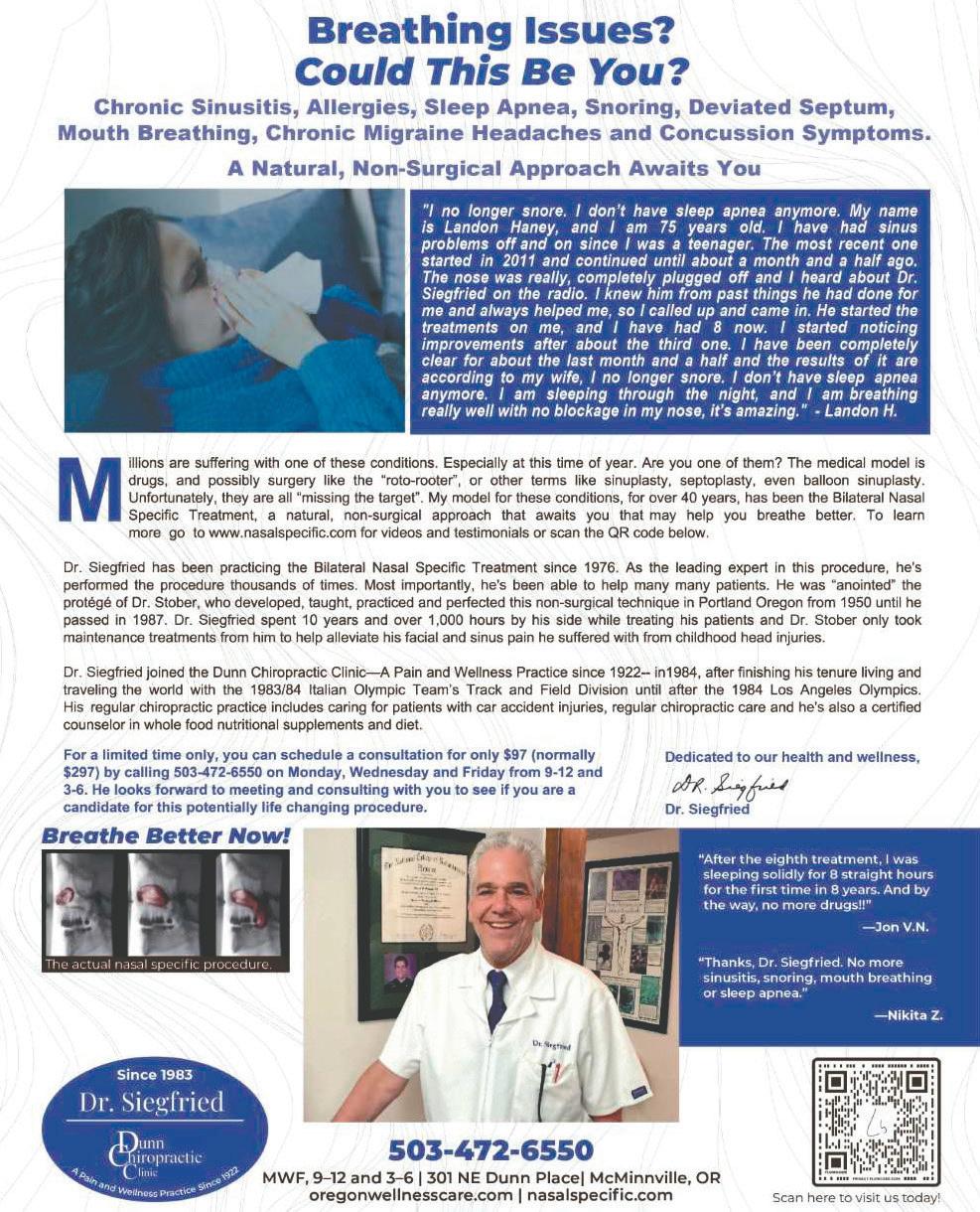 Advantage Magazine DIRECT MAIL • DIRECT RESULTS PO Box 672 ∙ Aurora, Oregon 97002 To Advertise, Call 503.825.2111 Postal Customer PRESORTED STANDARD US POSTAGE PAID ACTIVE MEDIA Dr. Siegfried is dedicated to the health and wellness