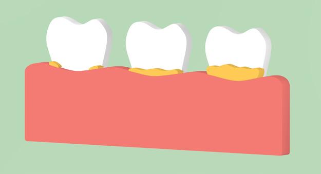Tartar or calculus, on the other hand, is when plaque remains on the teeth for so long that it starts to harden onto the teeth, kind of like barnacles. It can be found on all surfaces of the teeth, but it is especially harmful when the accumulation is under the gums (subgingival). Most patients do not feel any pain because the build up of calculus can happen slowly over many years. The presence of subgingival tartar is usually found by a dental professional and can be felt upon clinical exam or by evaluating radiograph (X-rays). The tell-tell signs of moderate subgingival tartar are bleeding upon flossing, brushing, red or swollen gums, a foul odor or taste and in the most aggressive cases, severe pain. When tartar remains under the gums for too long it can cause destruction the supportive bone around the teeth. This process is known as periodontal or gum disease.