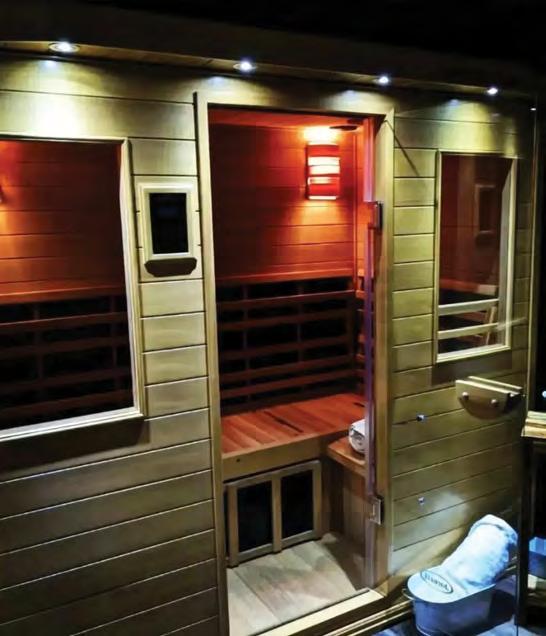 Unique to the spa, the infrared sauna operates at lower heat levels and heats at a cellular level, aiding detoxification, weight loss, better sleep, joint pain relief and improved mood.