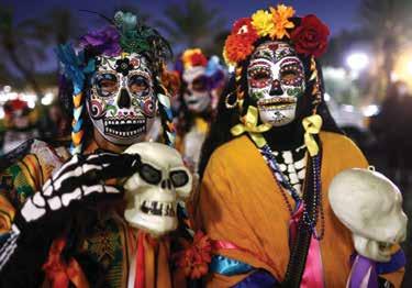 What makes the Day of the Dead so special, however, is not just its pageantry, but a continual connection with loved ones that transcends the finality of death. Families gather in cemeteries, often staying overnight, to clean and decorate graves, share stories and celebrate with music and food. Frequently, entire communities join together for processions and parades, where everyone is invited to join in the festivities.