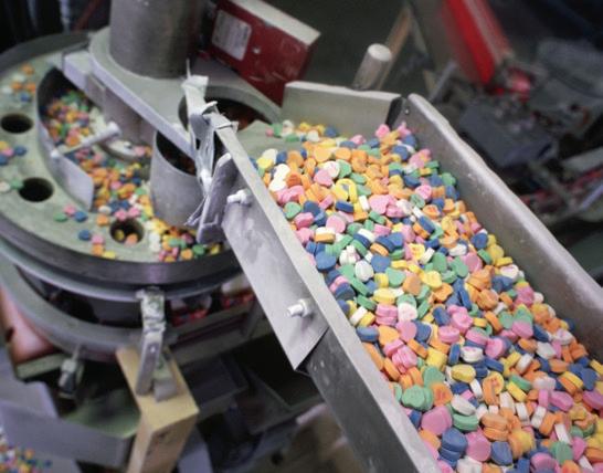 However, Daniel’s “conversation candies” or “motto lozenges” weren’t heart-shaped until later in 1902. Until that time their candy was sold in a simple disc shape, but eventually they were sold in shapes like baseballs, watches and horseshoes. When the candy hearts were introduced they were hugely successful, and over the next 100 years other smaller companies began selling similar candies. In 1990, Necco acquired Stark Candy Company and became the “leading manufacturer in conversation hearts.” Today, the company claims to manufacture nearly 100,000 pounds of Sweethearts every day and approximately 8 billion candy hearts each year.