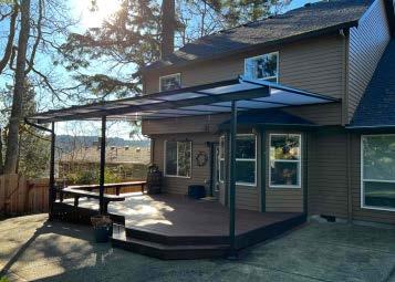 used for their patio roof covers which allows more daylight to penetrate under the patio cover as well as filter into the home. This is especially nice for the prolific cloudy days in the Northwest. These Acrylic covers also reflect three-fourths of the heat away from the living space which creates a more comfortable environment year-round. And for winter, these patio covers are designed and engineered to withstand the snow-load and high winds here in the Northwest.