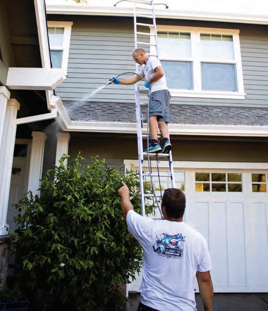 pressure washing, but it’s about the entire experience. “From start to finish, we want the entire process to be relational and professional. After all, I’m sending my team to walk amidst a client’s home, their kids, their pets — our clients have to feel good about the interaction as well as the results we deliver while we’re there.”