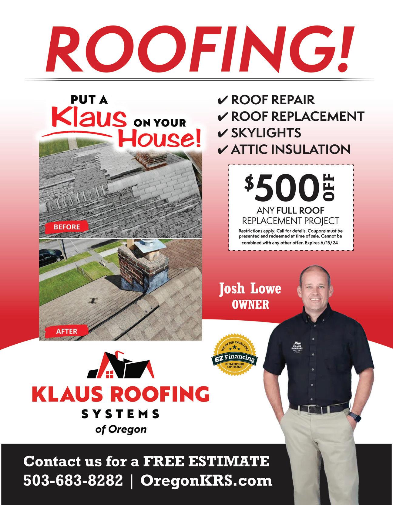 Installing Comfort Since 1998! Windows | Doors | Siding | Roofing Visit our new Salem showroom today! 1330 12th St. SE, Suite 100 CUSTOMER REVIEWS Veteran, Locally Owned & Operated CCB#133106 • WA#:LIFETWD917P2 Employee Installers • Custom Solutions • 0% for 12 months OAC Energy Incentives Available. No pressure In Home Estimates. CALL NOW FOR A FREE ESTIMATE 971-265-6298 CELEBRATING 26 YEARS IN BUSINESS WITH 26% Off YOUR ENTIRE PROJECT *Cannot be combined with any other offers or discounts. Restrictions apply. FENCES, DECKS & MORE CALL TODAY FOR A FREE ESTIMATE 503-536-0959 CCB# 248752 Fences Decks Painting Power Washing WE DO: Painting • Remodels • Fences Power Washing • Decks • More SPRING SPECIALS With this coupon. Not valid with other offers. Offer expires 6/15/24 With this coupon. Not valid with other offers. Offer expires 6/15/24 CALL FOR DETAILS 503-536-0959 CALL FOR DETAILS 503-536-0959 ANY DECKING PROJECT ANY FENCE PROJECT $250 $250 OFF OFF 2 TO ADVERTISE WITH US, CALL 503.825.2111