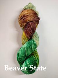Worsted, Fingering/Sock, Chunky and Double Knit available. Yarn hand-dyed here in Canby!