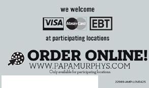 3 Any Pizza Any Size Any Stuffed Crust Pizza Any Large Pizza Any LargePizza Signature Pepperoni Pizza Choose Your Gourmet Delite® LARGE LARGE Fresh Pan In Large Only Includes Signature Gourmet Delite ®, Stuffed, Fresh Pan or Create Your Own up to 5 Classic Toppings. Additional Charge For Gourmet Toppings. Red Sauce & Premium Pepperoni Family Size $3 More Family Size $3 More Family Size $3 More 12 2 14 14 15 LSM03 LSM 03 LSM03 LSM03 LSM 03 LSM03 IN-STORE ONLY. Valid at participation location for a limited time. Not valid with other offers. Cannot be sold, transfered or duplicated. Limit 1. 924 AMP03717 IN-STORE ONLY Valid at participation location for a limited time. Not valid with other offers. Cannot be sold, transfered or duplicated. Limit 1. 937 AMP03717 IN-STORE ONLY. Valid at participation location for a limited time. Not valid with other offers. Cannot be sold, transfered or duplicated. Limit 1. AMP03716 IN-STORE ONLY Valid at participation location for a limited time. Not valid with other offers. Cannot be sold, transfered or duplicated. Limit 1. 1800 AMP03716 IN-STORE ONLY. Valid at participation location for a limited time. Not valid with other offers. Cannot be sold, transfered or duplicated. Limit 1. 964 AMP03716 IN-STORE ONLY. Discount off regular menu price. Excludes Mini Murph®, FAVE® and desserts. Valid at participation location for a limited time. Not valid with other offers. Cannot be sold, transfered or duplicated. Limit 1. 1662 AMP03716 WILSONVILLE 8269 SW Wilsonville Rd. 503-682-1793 Expires 11/15/23 Expires 11/15/23 Expires 11/15/23 Expires 11/15/23 Expires 11/15/23 Expires 11/15/23 HOURS: Saturday - Thursday 11AM - 8PM Friday 11AM - 9PM 30200 SW Boones Ferry Rd. • Wilsonville 503-486-5198 • mrgyrosusa.com Located at Fred Meyer shopping center mr_gyros@outlook.com OurTryFresh Homemade Hummus GIANTSaladsGYROS & More Delicious Mediterranean & Lebanese Cuisine $3 OFF Any Purchase OF $25 OR MORE DINE IN ONLY One coupon per visit/table. Must present coupons at time of purchase. Cannot be combined with any other discount, promotion, special or offer. Expires 11/15/23 $30 OFF Any Catering Order OF $150 OR MORE Contact: mr_gyros@outlook.com One coupon per order. Must present coupons at time of purchase. Cannot be combined with any other discount, promotion, special or offer. Expires 11/15/23 50% OFF GYRO Buy 1 Gyro & 2 Fountain Drinks & Receive the 2nd 50% OFF One coupon per visit/table. Must present coupons at time of purchase. Cannot be combined with any other discount, promotion, special or offer. Expires 11/15/23 50% OFF ENTREE Buy 1 Entree item and 2 fountain drinks and receive the 2nd entree 50% off One coupon per visit/table. Must present coupons at time of purchase. Cannot be combined with any other discount, promotion, special or offer. Expires 11/15/23 *Moving to our new space this summer in the same center. (Across from Oswego Grill next to Dotty’s Deli) COMMUNITYADVANTAGEMAGAZINES.COM 5