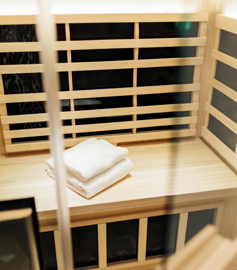 “The Sweat” is an infrared sauna which warms the body in the same manner as the sun. Unlike traditional saunas which heat the air and make it difficult to breathe, infrared saunas heat the body directly and provide deeper tissue penetration without all the hot air! Receive the benefits—sweating is our body’s natural way of detoxifying—without the many, sometimes harmful drawbacks of regular saunas. Infrared is not just safe, it’s part of the natural world and it’s essential for life. Customize your experience with Chromotherapy or Color Therapy or boost your results with their exclusive and free add-on, Red Light Therapy. Connect your device via bluetooth for a guided meditation, podcast, or music.