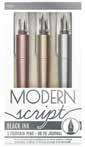 Modern Script Fountain Pen and Journal set includes three black ink fountain pens in gold, rose gold, and silver, plus a 60-page gold and silver ombré-covered journal. The pens work with Splendid Fountain Pen refills and pairs nicely with Modern Graphite Pencils. Suitable for ages 12 and up.