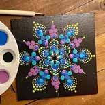 Enjoy a fun class with Melissa Johnston as she shares with you how to create oneof-a-kind mandala by using dots! You will be creating on a six-by-six canvas. Class is appropriate for ages 10 & up and all skill levels. Please dress appropriately as the paint can stain clothing.