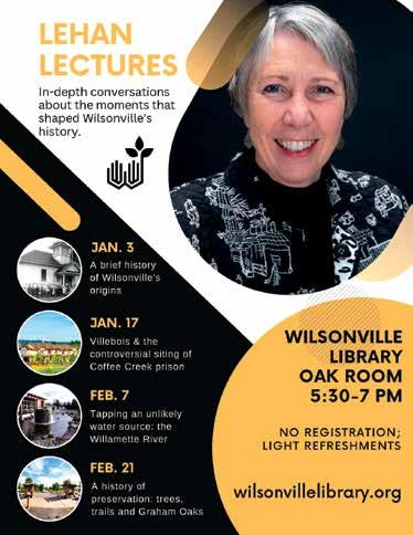 City Councilor, and former mayor, Charlotte Lehan provides an indepth conversation about moments that shaped Wilsonville's history. No registration required. Light refreshments will be served.