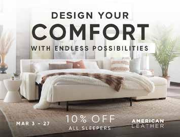 FREE Delivery + FREE Set-Up + FREE Haul Away $100 off Any Purchase of $500 or more, On Everyday Low Price Items *Excludes Tempur-pedic & American Leather products. One offer per household. No prior sales please. Coupon Expires 5/15/23. We’re Open Mon-Sat: 9am-5:30pm First Class Service With Top Quality Home Furnishings 27050 S. Hwy 170 • Canby 503-COMFORT (266-3678) www.canbycomfort.com “Neil and Joel, Outstanding in Their Field!” CUSTOM OPTIONS FOR THE PERFECT FIT! Savings Are Blooming! We have dozens of items below our Everyday Low Prices. Come and see what we have to offer! Since 1963 DELIVERING COMFORT Spring Cleaning Time at
