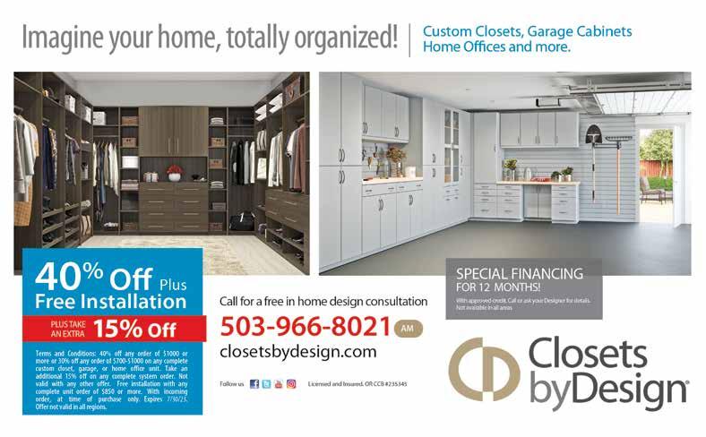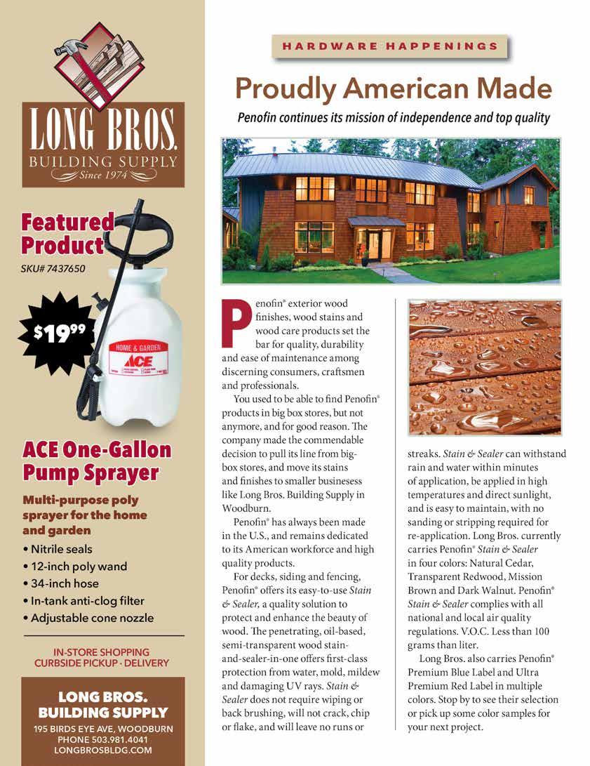 Call Now For A FREE In-Home Consultation 971-203-0075 *ALL OFFERS EXPIRE 7/31/23. Other restrictions may apply. Visit Pacificgutter.com for complete details. Never Get On A Ladder Again $1500 off Whole Home Installation + $500 if installed this month • Lifetime-guarantee to NEVER clog, leak or pull away from your home! • The largest and most durable gutter system on the market • All-in-one enclosed gutter guard system built to withstand the heaviest rain • Transferable warranty adds value to your home WA#PACIFGC809MA CCB#231981 NOW OFFERING GUTTER MAINTENANCE AND CLEANING! WHAT YOU GET: NO INTEREST NO PAYMENTS TIL 2025! 503.263.8557 WATER TREATMENT · PUMP SERVICE · IRRIGATION WATER IS OUR BUSINESS Over 25 years serving the local community DESIGN · FABRICATION COMPLETE INSTALLATION WATER TESTING We stock a complete line of sump, sewage & utility pumps. CCB # 0052426 Fisher's Supply specializes in water softeners, iron removal systems, carbon media filters, sediment filters, sand separators, ozone filters, UV Lights, PH filters, injection pumps, ice filters, and complete water quality systems with full installation services. LEARN MORE AT: FISHERSSUPPLY.COM 659 SW 1ST AVE · CANBY HOURS: Mon-Fri · 7AM-5PM Saturday · 8AM-4PM CLOSED SUNDAY COMMUNITYADVANTAGEMAGAZINES.COM 35