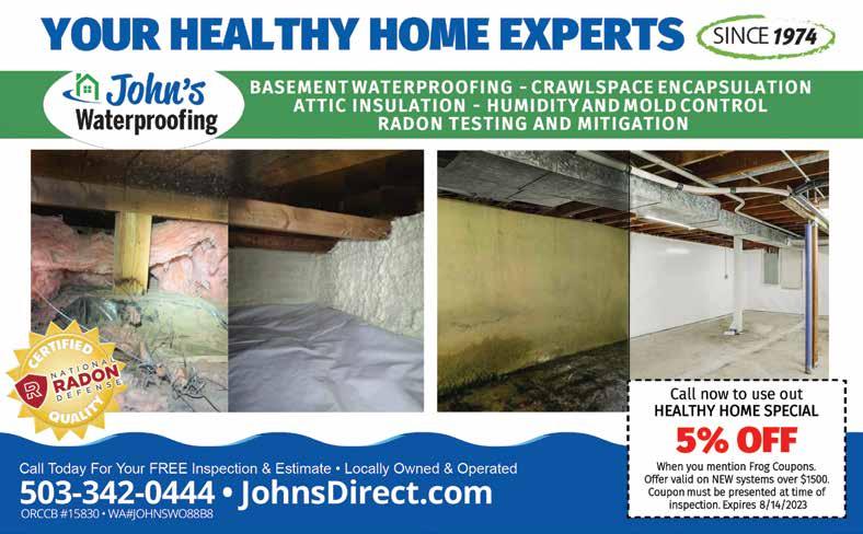 $200 OFF ANY AIR SEALING & INSULATION PACKAGE C annot be combined with any other offer. Not valid for prior work, must be presented and redeemed at time of estimate. EXPIRES 9/ 15/23 5 03-744-5004 D rEnergySaverPNW.com C CB #176741 IT’S NOT RIGHT! It’s wasting your money every month and making your home uncomfortable. THIS IS RIGHT! And it’s what’s underneath that makes your whole house WARMER in winter and COOLER in summer. Call us for a free estimate and find out what it is! DON’T SWEAT IT! Save up to 30% on energy costs this summer! If your attic looks like this We also do crawl spaces and water, mold, and rodent control! Scan the code to learn more
