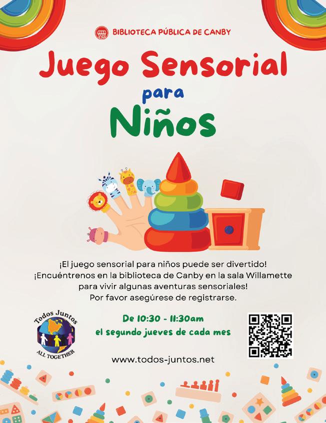 This fall, Todos Juntos is partnering with the Canby Public Library to bring the Sensory Play for Kids program to families. Held on the second Thursday of each month from 10:30–11:30 a.m. in the Willamette Room, this playgroup offers young children that may need a quieter, smaller playgroup a space to explore through sensory-rich activities designed to stimulate their minds and bodies.