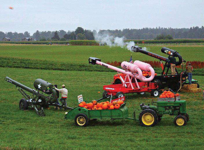 The farm hosts a variety of activities for kids and families, including a hayride, a hay maze, and a petting zoo. Additionally, fire engine rides, pedal tractors, and various games cater to the adventurous spirit of young visitors. Adding to the charm is the Grand Island Railroad, a rideable train inspired by a neighborhood train enthusiast. This blend of entertainment and farm life embodies the Heiser family’s philosophy: “If we don’t have it, you don’t need it at a pumpkin patch.” During the lunch hour every Saturday and Sunday in October, the farm resonates with live Bluegrass performances for guests to enjoy while dining at the picnic tables arranged around the stage. This unique blend of music and dining offers a memorable weekend experience amidst the rustic charm of the farm. Apart from the regular attractions, the farm hosts special events, such as a Demolition Derby, where cannons fire pumpkins at old cars until they are reduced to rubble, and a Fireman Water Ball Contest, where local fire departments compete by shooting water at a ball in a bid to move it in the opponent’s direction.