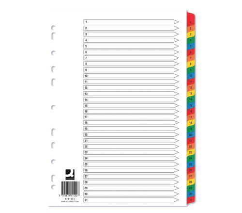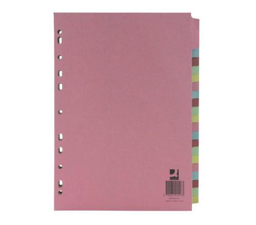 The tabs on this Q-Connect twenty part divider have been left blank to allow you to customise it with your own labels. Each sheet is a different colour, enabling you to colour code your documents as you wish. It has been multi-punched to fit standard A4 ring binders and lever arch files.