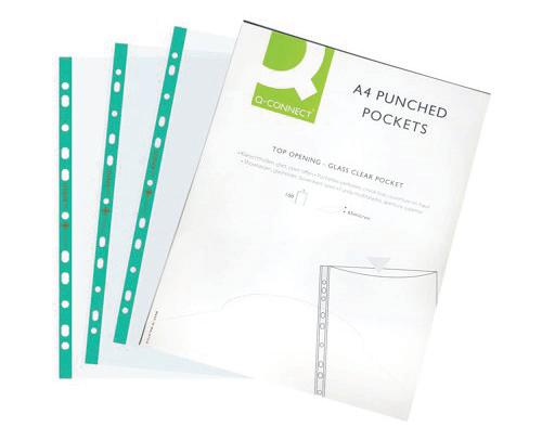 Great for presentations, displays and general filing, these durable and versatile Q-Connect punched pockets are A4 size and multi-punched for use in standard ring binders or lever arch files. The glass clear 65 micron pockets are also top opening for quick and easy access to documents.