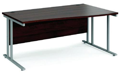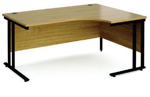 Ergonomic left and right hand desks with cantilever frame and full leg return. Two cable ports
