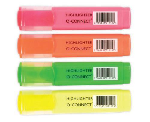 Mark important sections of documents with these vibrant Q-Connect Highlighters. The chisel tip allows for controlled and precise highlighting and underlining, and the ink is bright and fade-resistant for long lasting results. Ideal for revision and general office and home use.