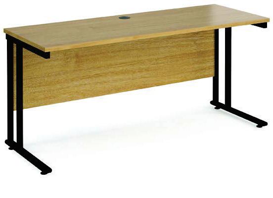 Straight desks with cantilever leg frame. 600 deep desks have single central cable port. 800 deep desks have two cable ports apart from MC8 & MC10 which only have single central cable port.
