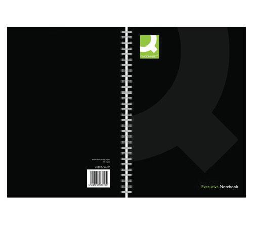 This executive Q-Connect wirebound notebook contains 160 pages of 80gsm paper, which is feint ruled for neat note-taking. The durable notebook features hardback covers with a laminated gloss finish for a professional look and feel. The wire binding allows the notebook to lie flat for easy note-taking.