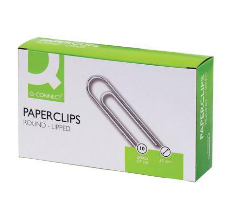 A simple way to collate papers, these quality 32mm Q-Connect Lipped Paperclips are ideal for general office and home use.