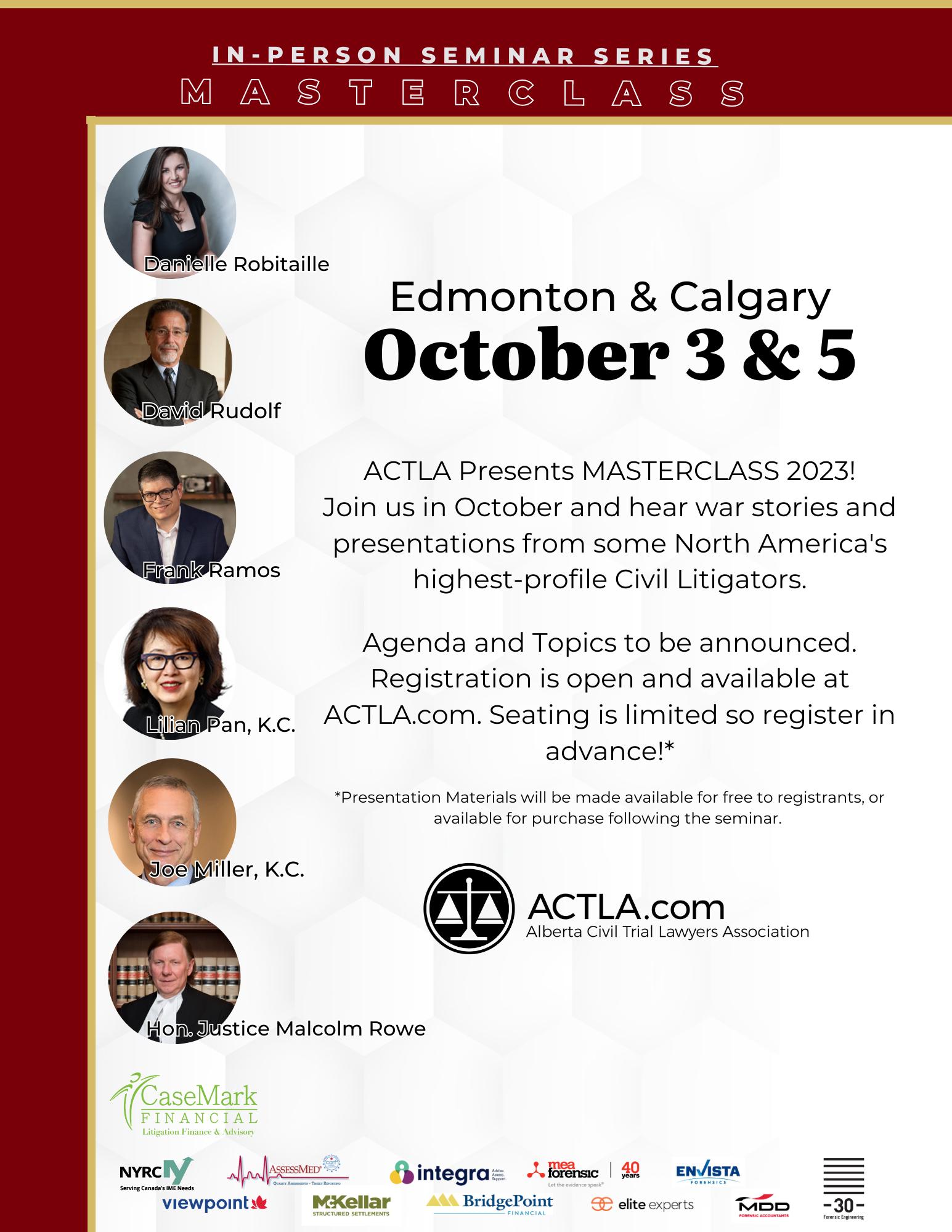 Statements and opinions expressed by the editors and contributing authors are not necessarily those of ACTLA. The official position or views of the Alberta Civil Trial Lawyers Association will be stated as such. Copyright © 2022 by the publisher, ACTLA. All rights reserved. Reproduction of any material herein without permission of the publisher is prohibited.