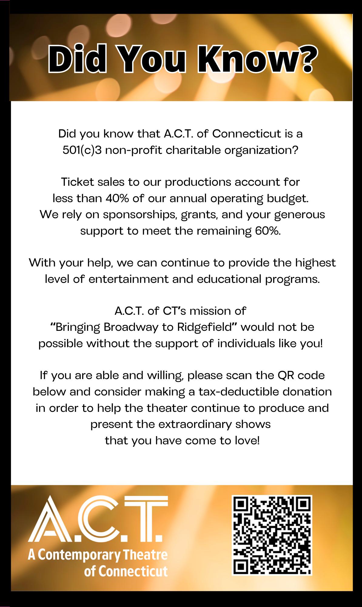 *Appearing through an Agreement between this theatre, A.C.T. of Connecticut, and Actors’ Equity Association, the Union of Professional Actors and Stage Managers in the United States. Actors’ Equity Association, the Union of Professional Actors and Stage Managers in the United States.