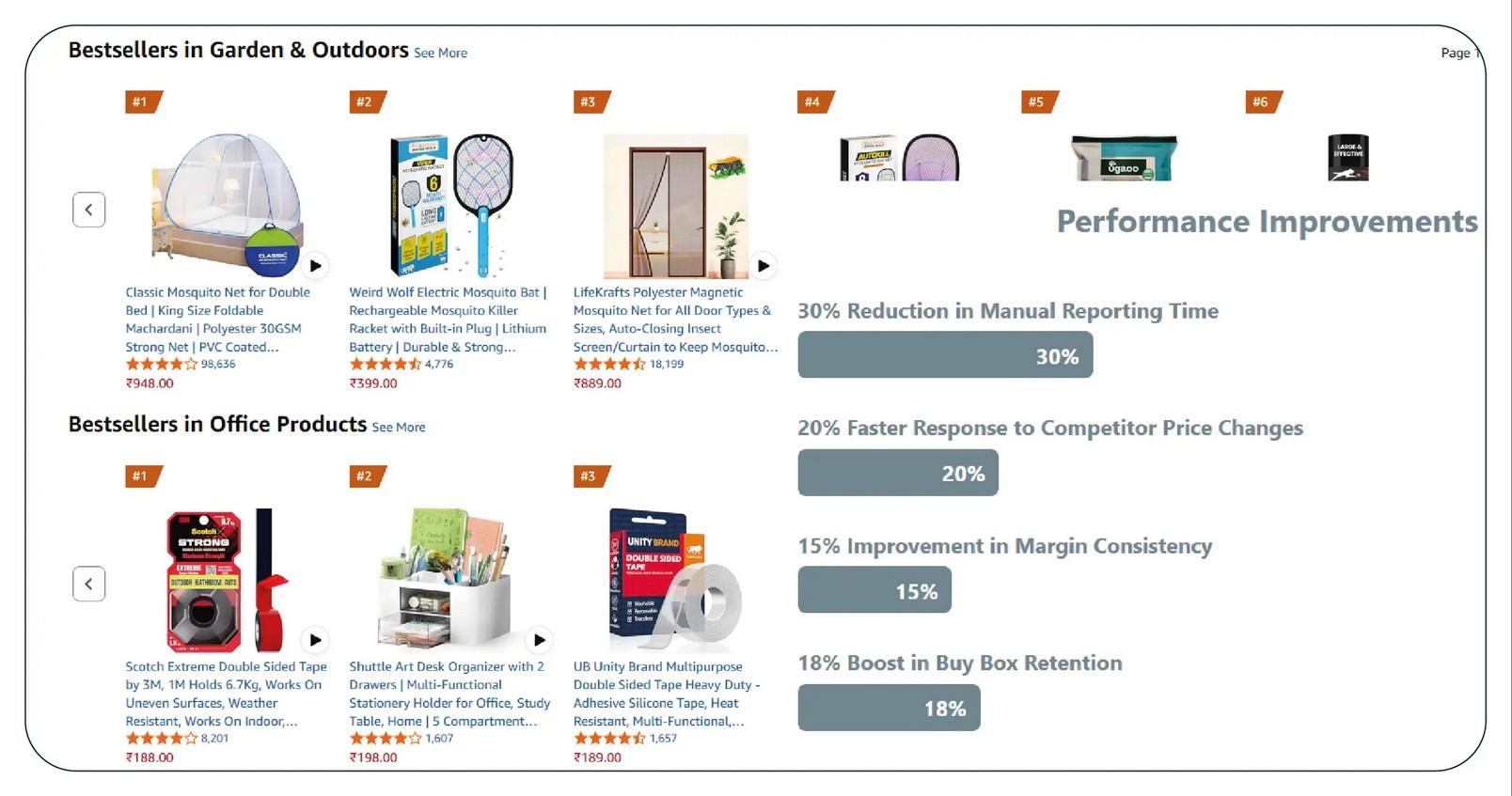 The brand strengthened its competitive position across Amazon India, improved seller visibility, and enhanced operational efficiency through structured automation.