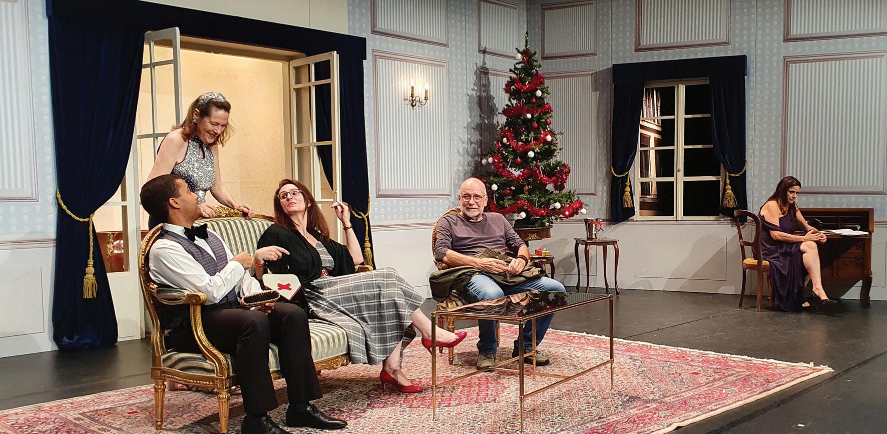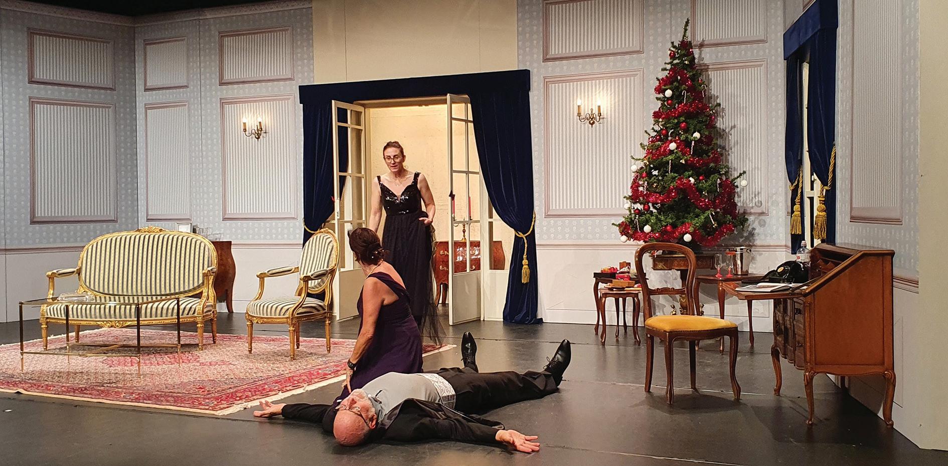 Oh pardon! je voulais dire «d’une des metteurs* en scène» mais pour cette pièce en particulier, comme il s’agissait de la préparation d’une récep tion plus que d’une mise en scène à pro prement parler le terme a dû me sembler plus approprié. Tenues de soirées, effer vescence, paquets cadeaux, sapin, cham pagne, etc. il fallait orchestrer la soirée - comme l’aurait fait une maîtresse de mai son - pour créer une véritable ambiance festive d’un soir de Noël dans les années 60.