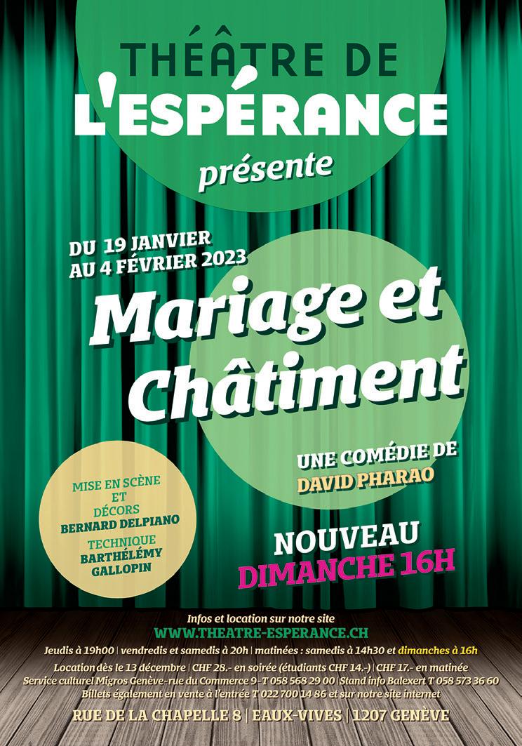 La première, celle que vous allez voir dans quelques instants, est un grand classique du genre, les deux suivantes, «Mariage et Châtiments» et «L’Heureux Elu», toutes deux créées en 2016, sont des comédies très contemporaines que nous aurons la chance de vous présenter en début d’année prochaine et au prin temps 2023.