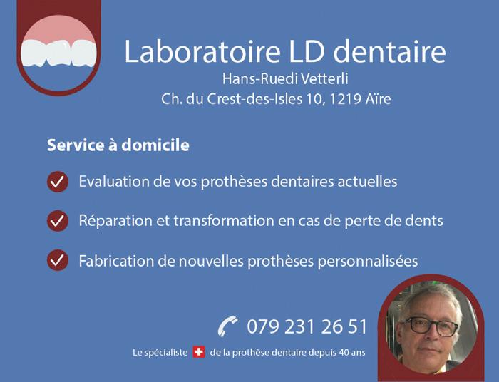 Entretien et réparation de votre «Troisième sourire» Service à domicile 10 Chemin du Château Bloch CH - 1219 Le Lignon 022 797 26 30 | 079 412 68 24 Bus N° 9 Arrêt BARDE Laboratoire Partenaire Solution Anti-Ronflement Scotolati Richard 14, route du Nant-d’Avril - 1214 VERNIER CAR WASH CENTER 24 h/ 24