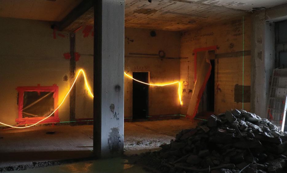Début février, nous sommes donc revenu.e.s à Porteous, prêtes à avancer la rénovation du local du Rez-de-Chaussée. Après le passage du désamiantage, tous les dispositifs trop vetustes et inutisables qui ornaient encore la pièce (vieux tuyaux, chemins de cables éléctriques, gaines etc...) ont été enlevés afin de la rendre la plus allégée possible. Ceci aussi pour accueillir les nouveaux réseaux d’eau et d’élécticité dans le futur.