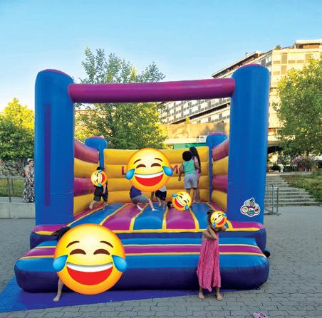 tous, avec un frigo qui résiste à la chaleur tropicale à l’intérieure de la buvette, une machine à glaçons qui nous permet d’offrir gracieusement des gobelets de glaçons à qui en veut, un magnifique babyfoot qui n’a malheureusement pas pu être mis en place cette année à cause d’un problème de barres non conformes pour des jeunes enfants, un château gonflable pour l’inauguration, des soirées musicales