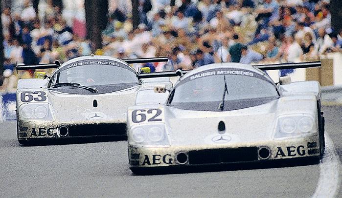 Juste, mais pour en arriver là, il s’est passé beaucoup de choses. Tout d’abord le développement de la voiture C8 dès 1985, qui a abouti à la Sauber C9 Mercedes, bien que le constructeur soit présent de manière non officielle, malgré la couleur argent de cette voiture. On n’oubliera pas non plus ce qui s’est passé jusqu’à 1989, lorsqu’une C8 s’était envolée sur la bosse des Hunaudières aux essais de 1988, ce qui nous avait contraints à retirer cette voiture. Une nouvelle version a été construite sur la base de ces enseignements. Elle est devenue la Sauber C9 qui allait gagner les 24 Heures du Mans 1989.