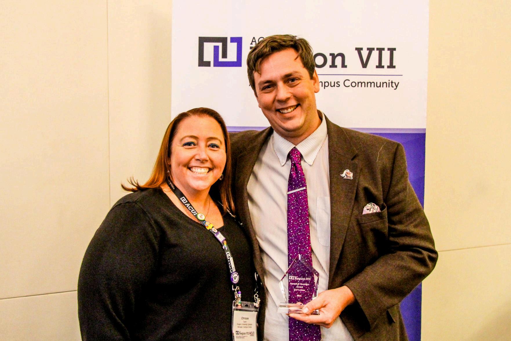 As the highest Region VII honor, this award is presented to an outstanding member of Region VII who has consistently performed above and beyond the call of duty in their role within ACUI and in their institution(s). The individual has attained prominence through efforts to develop the college union and student activities movement on a regional basis through their work within the Association and on their campuses. They exemplify the core values of ACUI by demonstrating exceptional commitment and support of other colleagues and continually volunteering in regional activities, councils, and programs to help advance the mission of ACUI